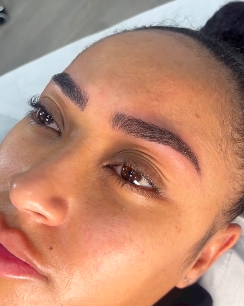 You may experience some redness, mild swelling, and flaking as your brows heal. Avoid heavy sweating, swimming, and applying makeup to the area during the healing phase.